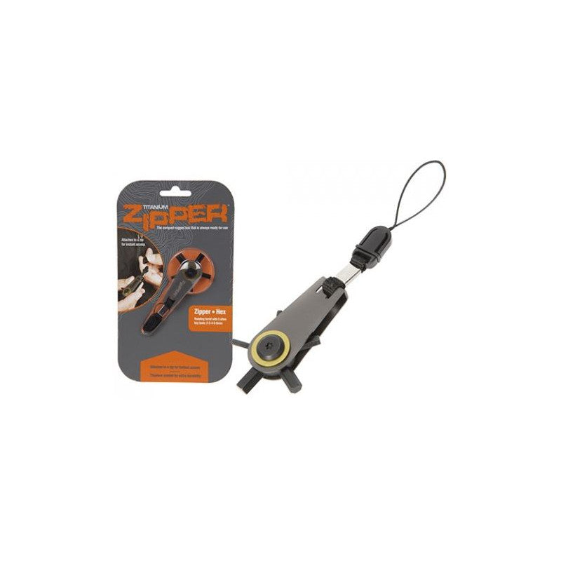 Esta ferramenta de zíper de titânio contém 5 chaves allen diferentes: 2,3,4,5 e 6 mm.